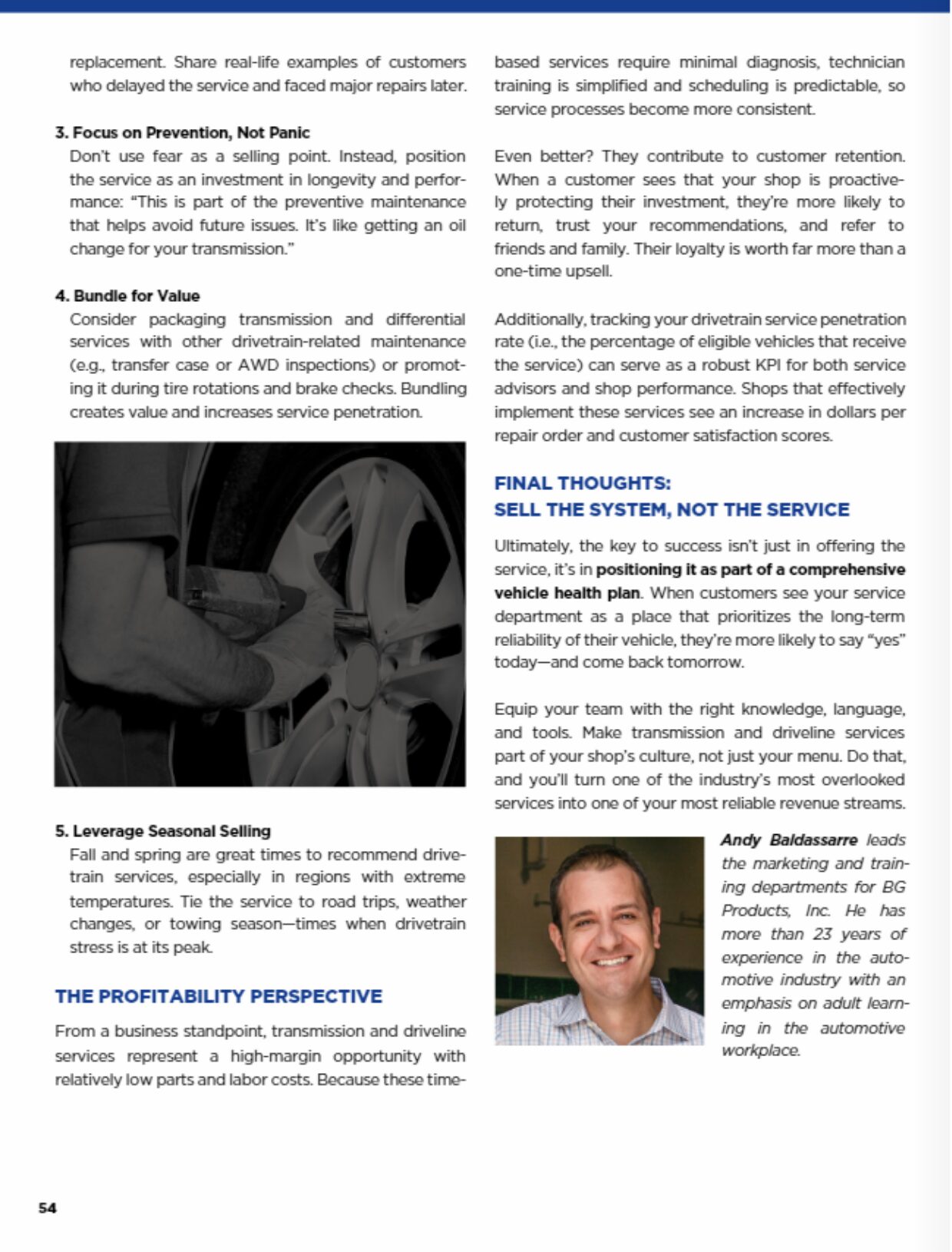 Equip your team with the right knowledge, language, and tools. Make transmission and driveline services part of your shop’s culture, not just your menu. Do that, and you’ll turn one of the industry’s most overlooked services into one of your most reliable revenue streams.