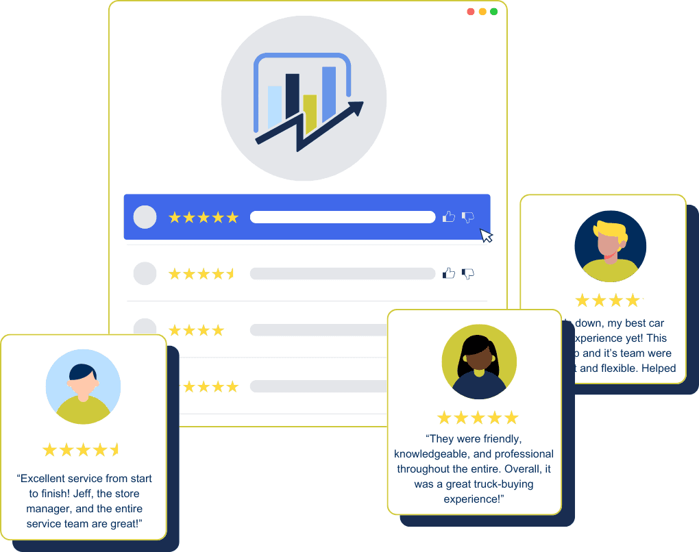 Let us tailor our proven system to your dealership’s unique needs—whether you’re looking to increase Google reviews, boost your CSI scores, capture video testimonials, or stand out in your local market.